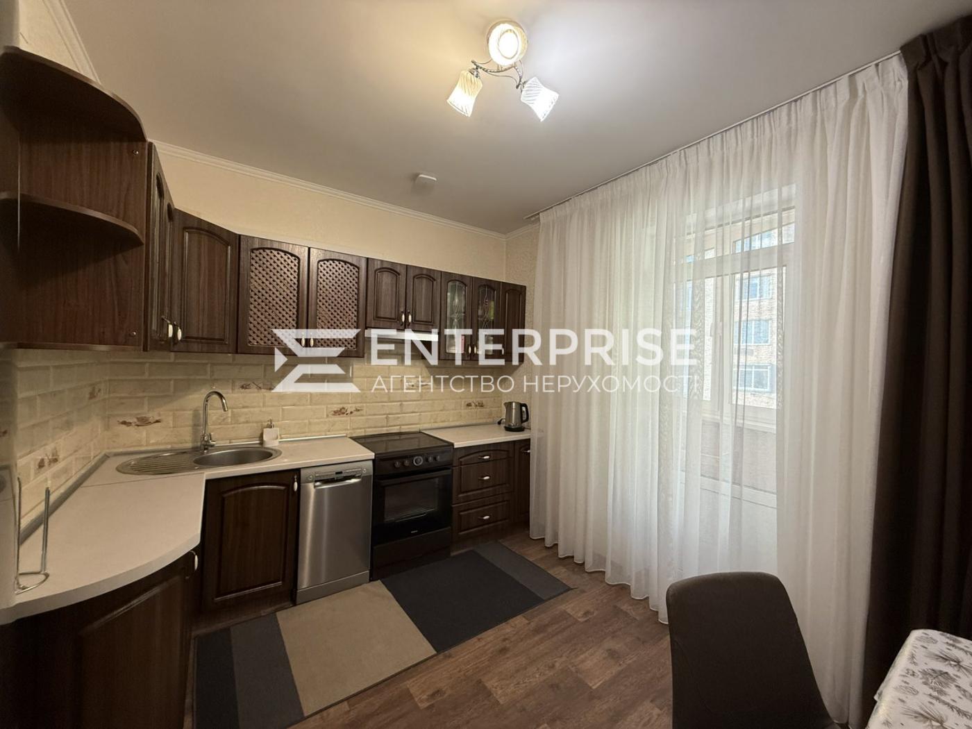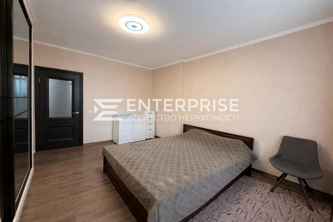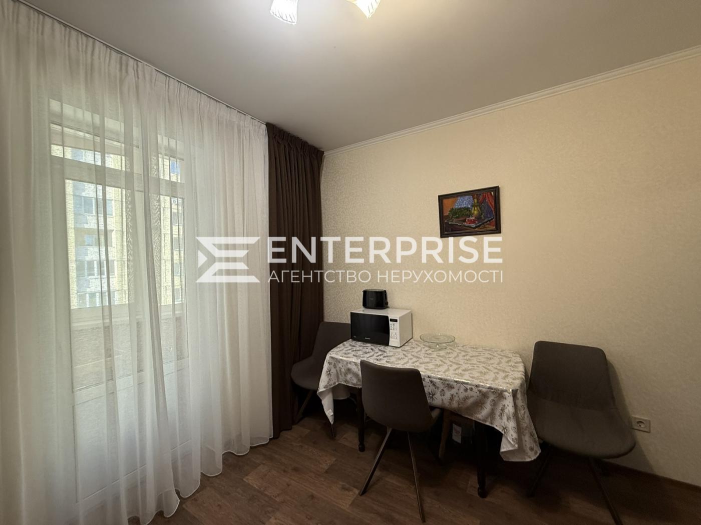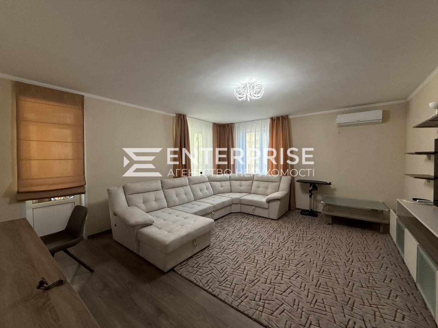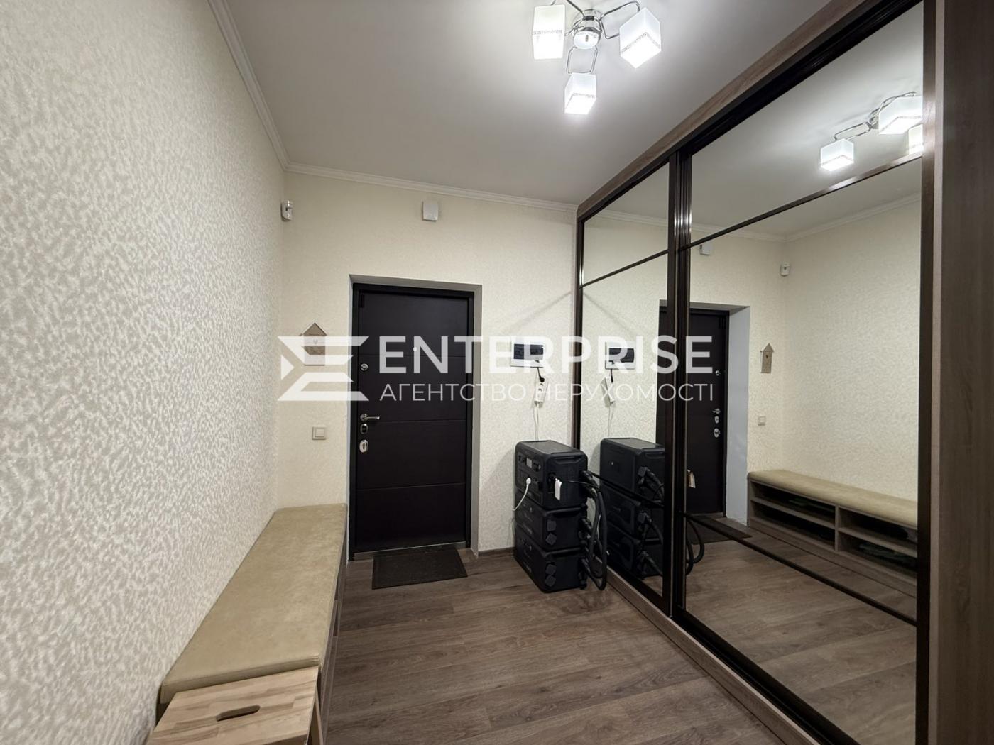 Квартира повністю мебльована та укомплектована необхідними меблями та технікою: холодильник, варильна поверхня, духова шафа, мікрохвильова піч, електрочайник, посудомийна машина, пральна машина, бойлер, двоспальне ліжко, кондиціонери (безшумні, працюють до -15 градусів), величезний м'який куточок, меблі, вбудовані шафи-купе.