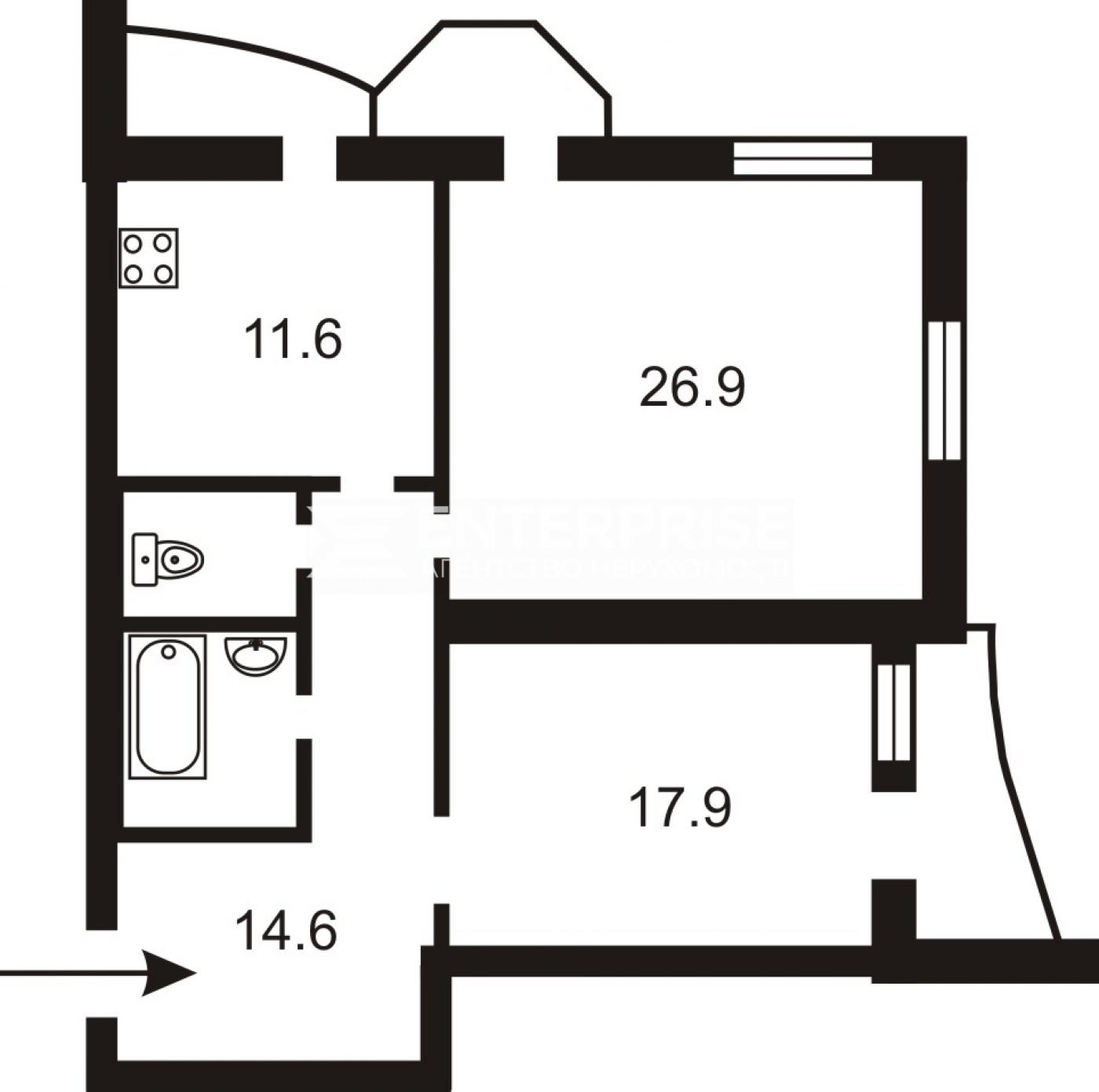 - Площа кухні: 11.6 м2