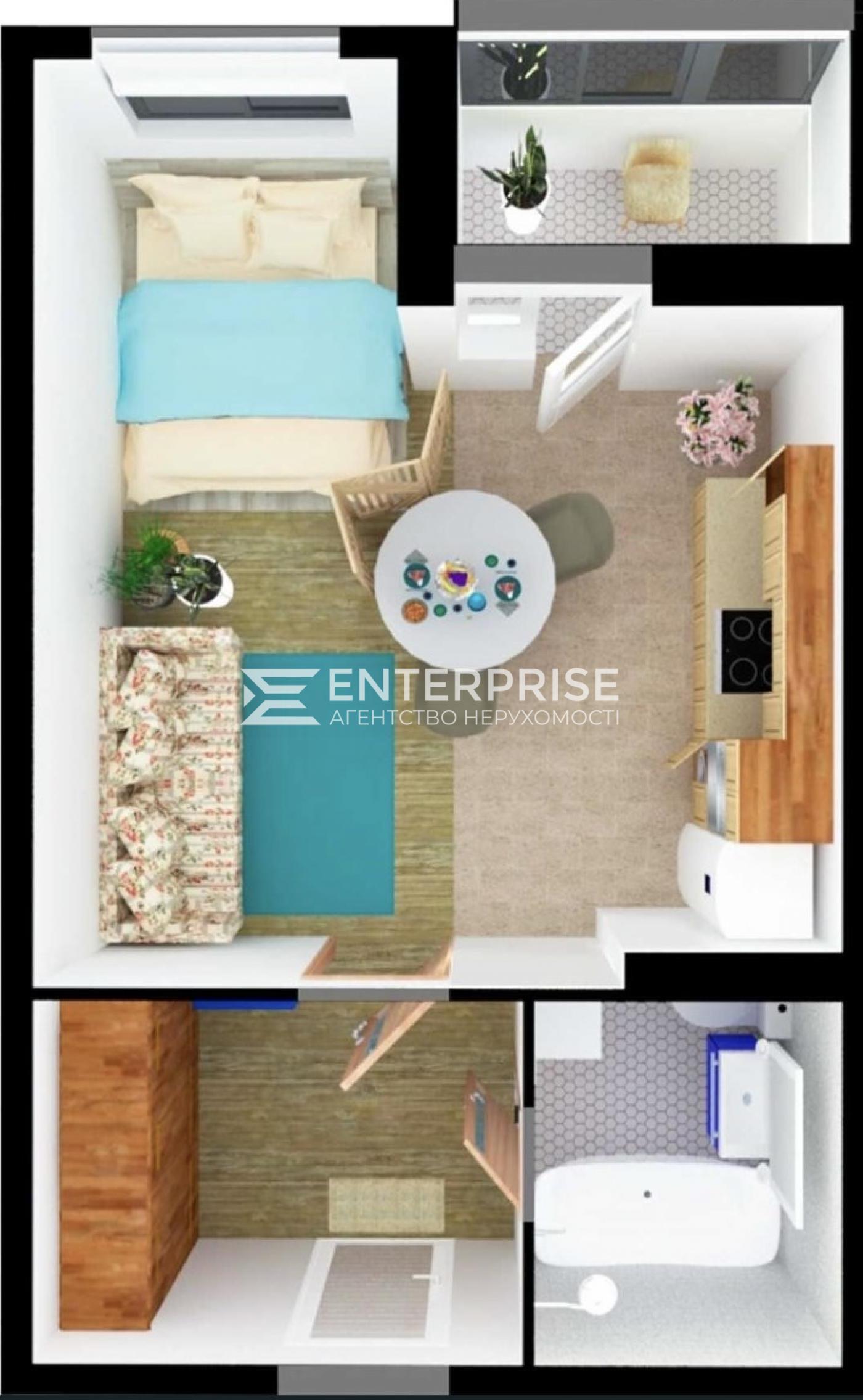 - Житлова площа: 14.37 м2