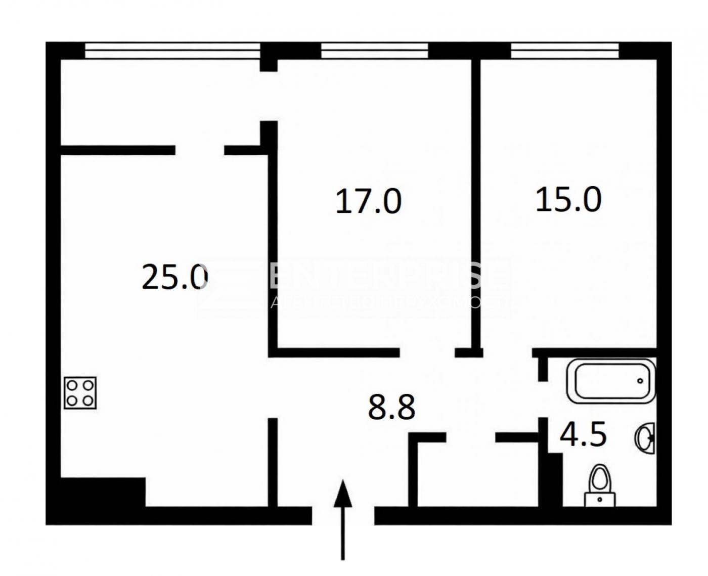- Площа кухні: 25 м2