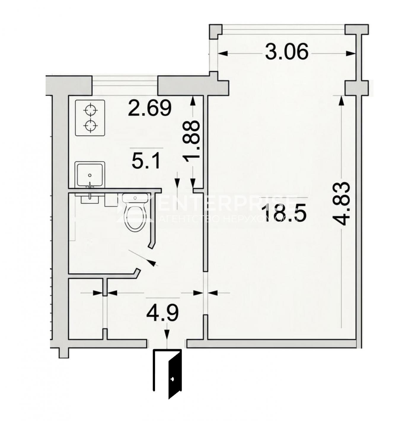 - Загальна площа: 31.3 м2