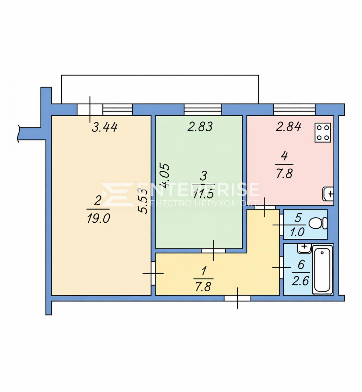 - Площа кухні: 7.8 м2
