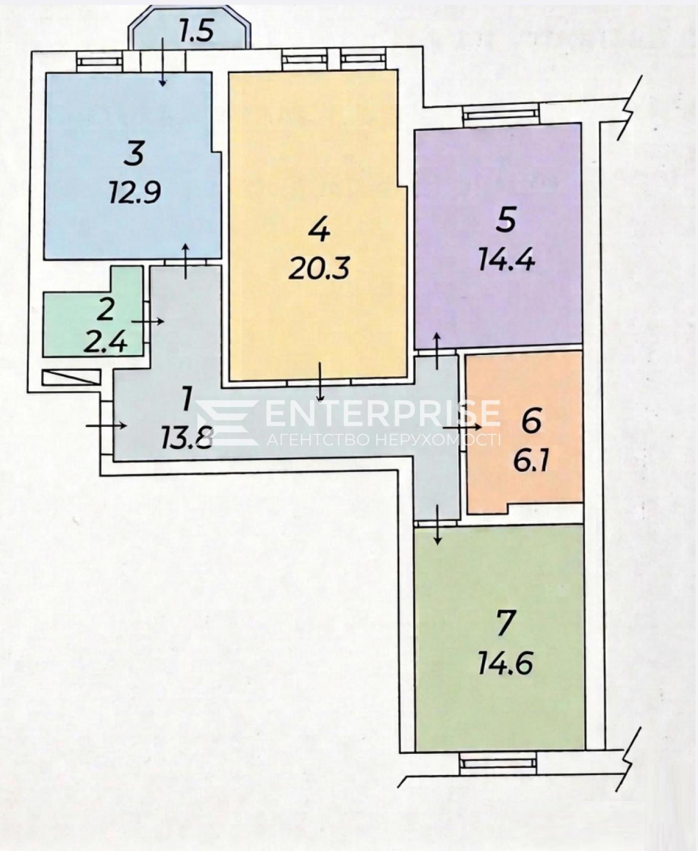 - Планування: 3 окремі житлові кімнати, 2 санвузли, засклений балкон.
