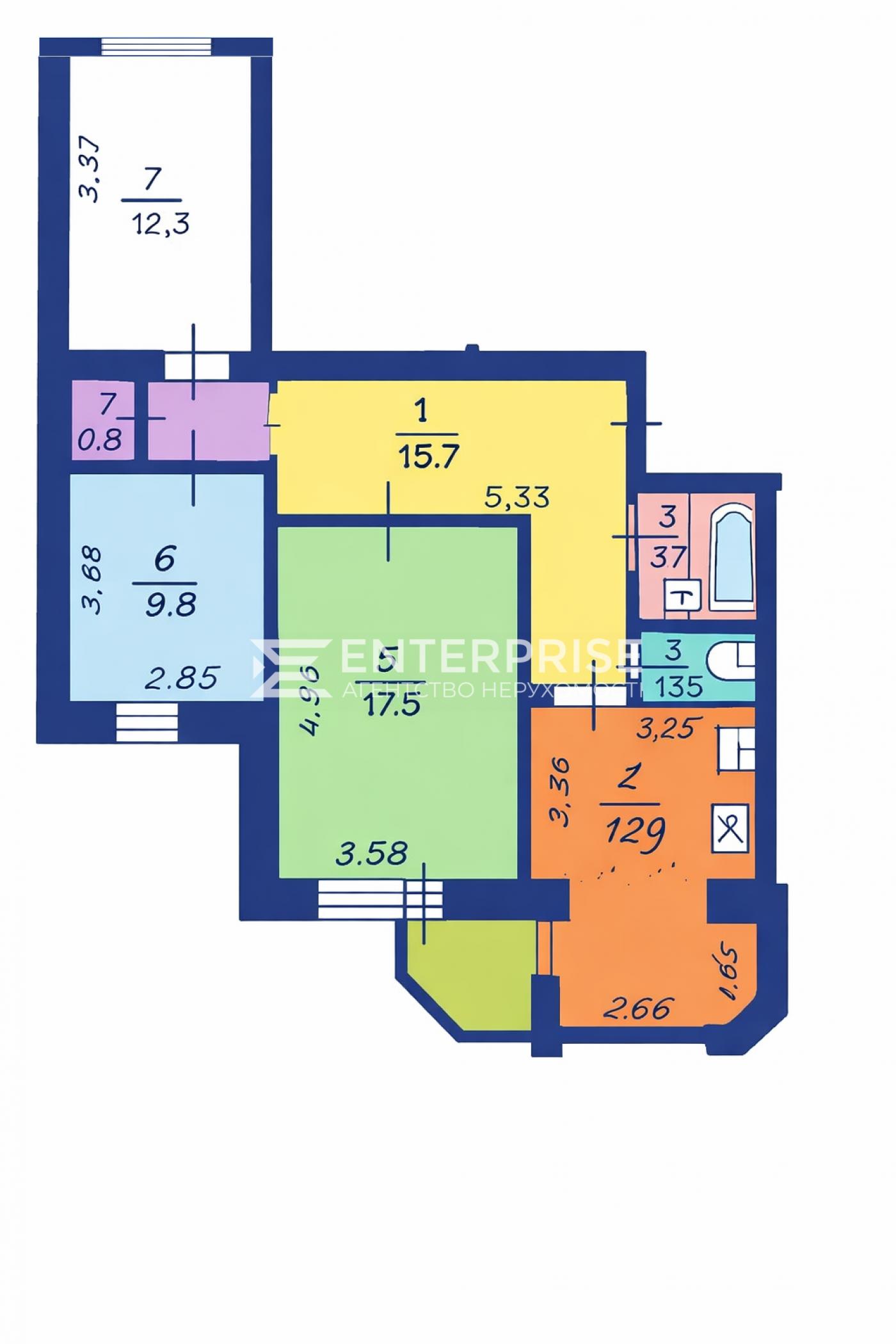 - Площа кухні: 12.9 м2