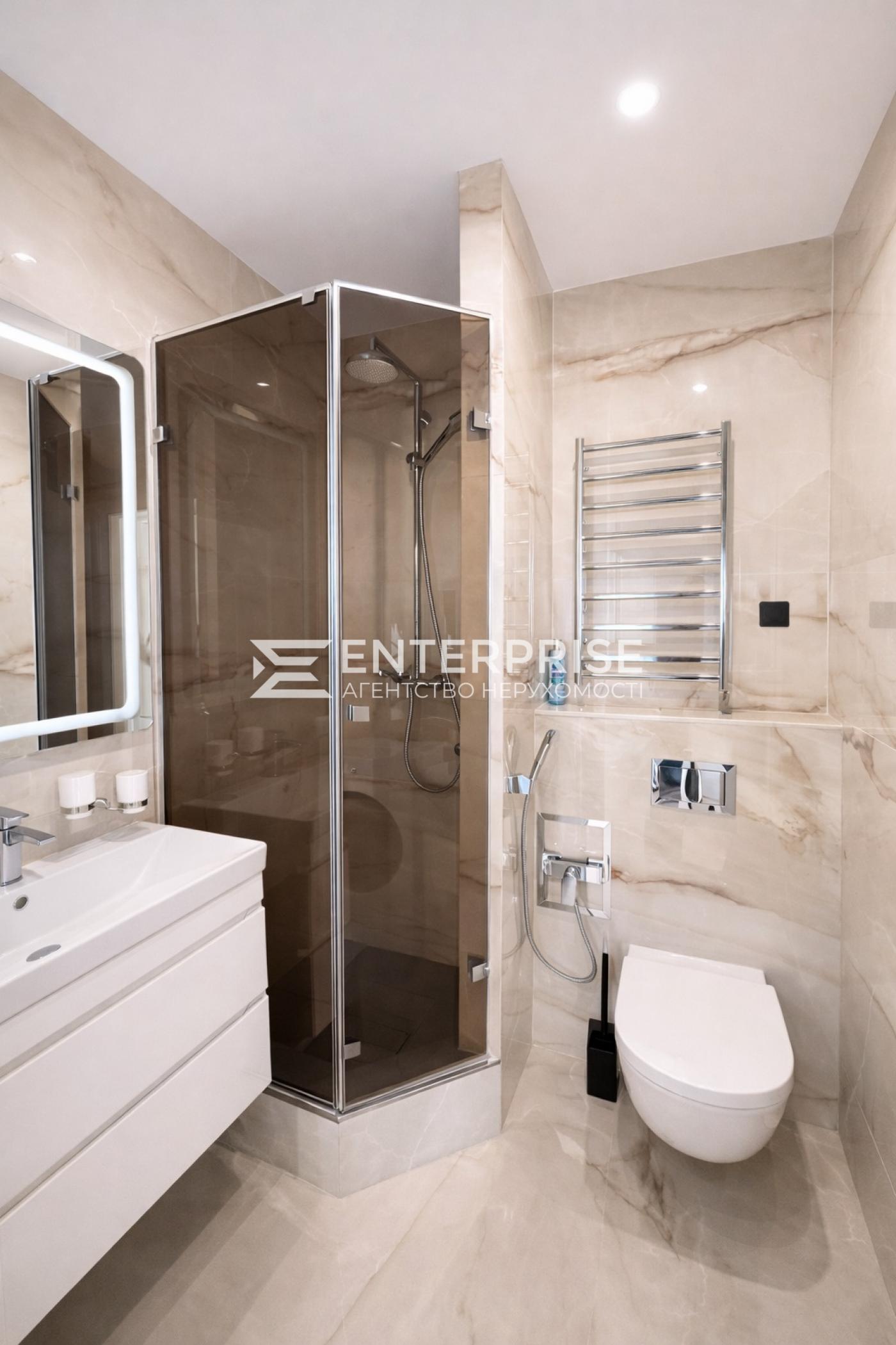 Дві роздільні кімнати, два санвузли, місткі шафи та панорамна лоджія.